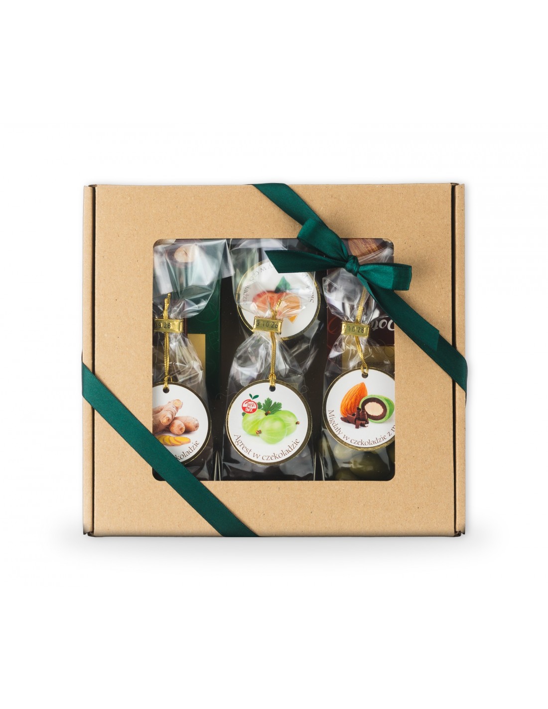 Jeśli jesteś miłośnikiem świątecznych smaków to zestaw z zieloną kokardą jest właśnie dla Ciebie. Oprócz trzech wyjątkowych smaków z Limitowanej Edycji Świątecznej - złotych migdałów w czekoladzie, śliwek w czekoladzie z cynamonem i migdałów piernikowych w mlecznej czekoladzie - zamknęliśmy w środku także trzy klasyczne smaki przywodzące na myśl świąteczny klimat. Podaruj sobie aż 600g świątecznej przyjemności!