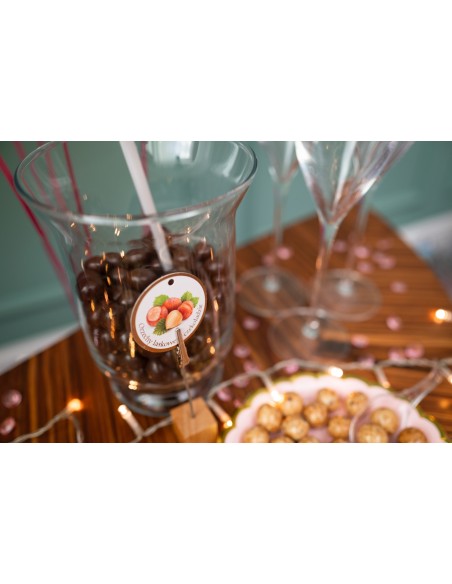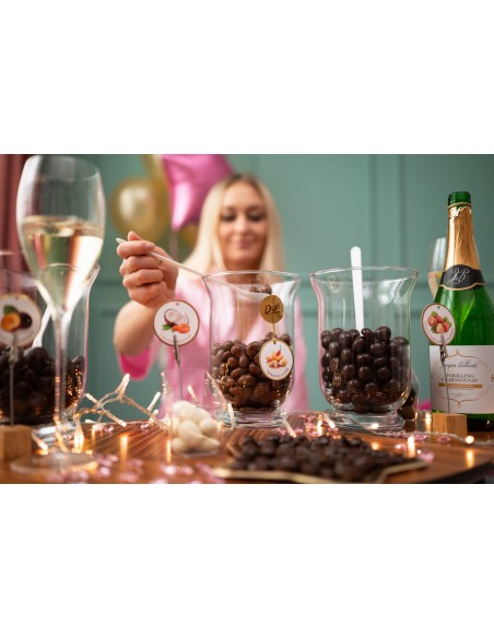 Czekoladki dostarczymy spakowane w foliowe opakowania. Sposób podania i ekspozycji pozostawiamy w Twojej gestii, by pasował do charakteru przyjęcia.